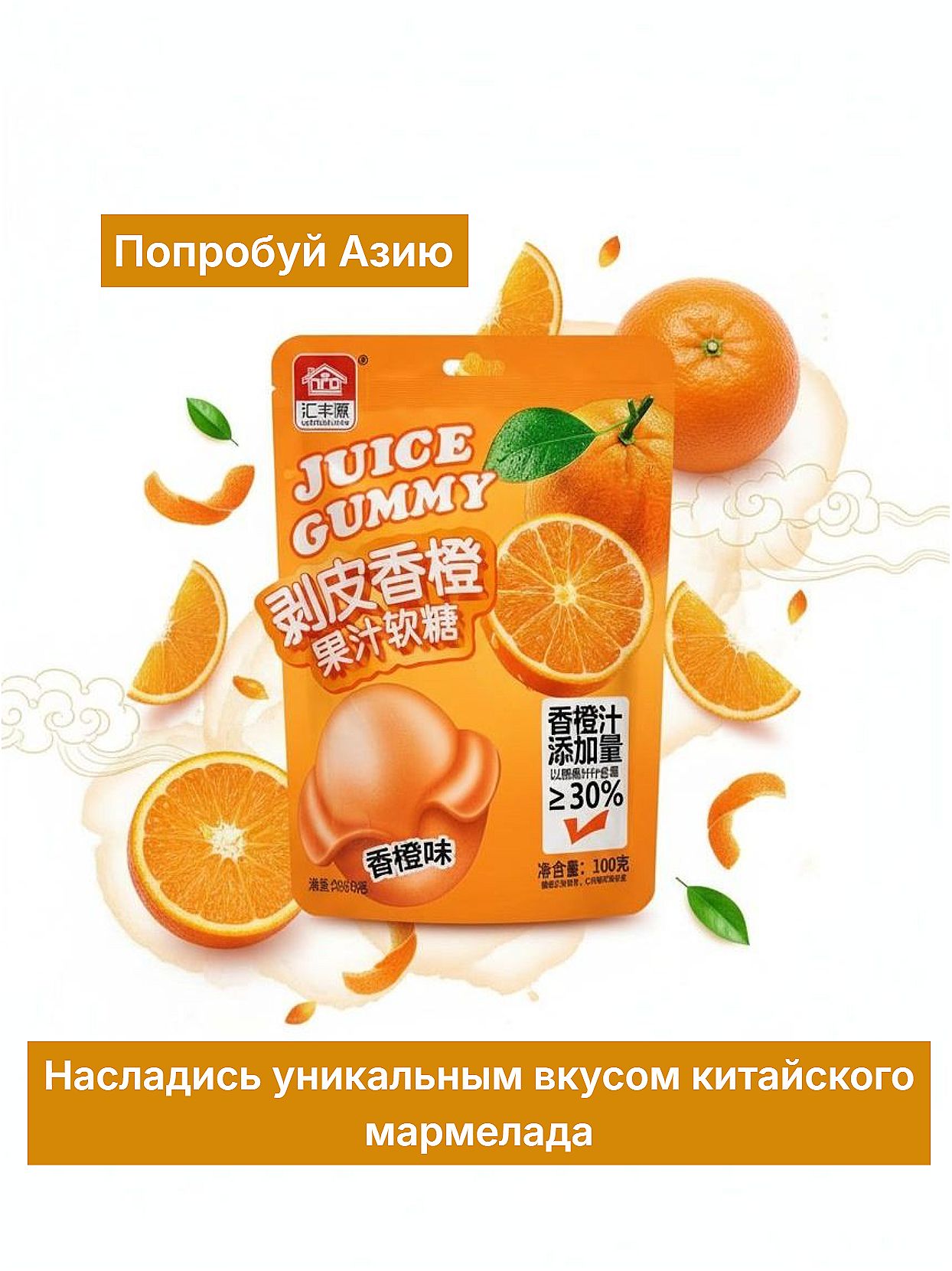 Аутентичный китайский жевательный мармелад HUIFENGYUAN с ярким вкусом апельсина. Сладость без границ по честной цене!